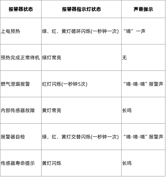 完全符合国标GB 15322.2-2019《可燃气体探测器 第 2 部分:家用可燃气体探测器》对燃气探测器故障指示的强制要求¹。